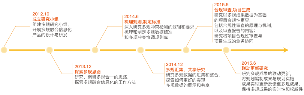 2012年下旬,響應(yīng)政策號召,我們組建了多規(guī)融合業(yè)務(wù)研究小組,并啟動了多規(guī)合一信息化工作的前期研究與調(diào)研。于2014年初,上海數(shù)慧形成了一套較完善的數(shù)慧多規(guī)融合解決方案。2015年5月,研制并發(fā)布了“數(shù)慧多規(guī)融合信息平臺”。此后,經(jīng)過與眾多專家的廣泛交流,結(jié)合多個地區(qū)多規(guī)合一空間信息平臺建設(shè)項(xiàng)目的實(shí)施經(jīng)驗(yàn),我們對多規(guī)融合有了更加深入的理解,數(shù)慧多規(guī)融合解決方案也得以持續(xù)完善。