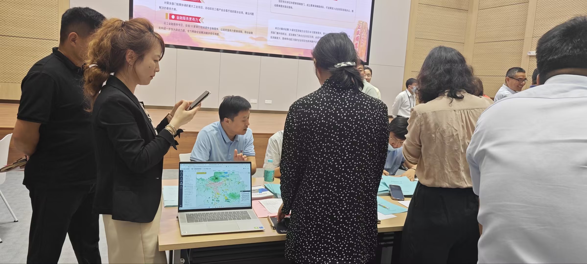 泰安市組織要素保障大集,政企交流會,泰安市自然資源和規(guī)劃局用我們公司實施監(jiān)督信息系統(tǒng)開發(fā)的五色選址功能支持現(xiàn)場交流。