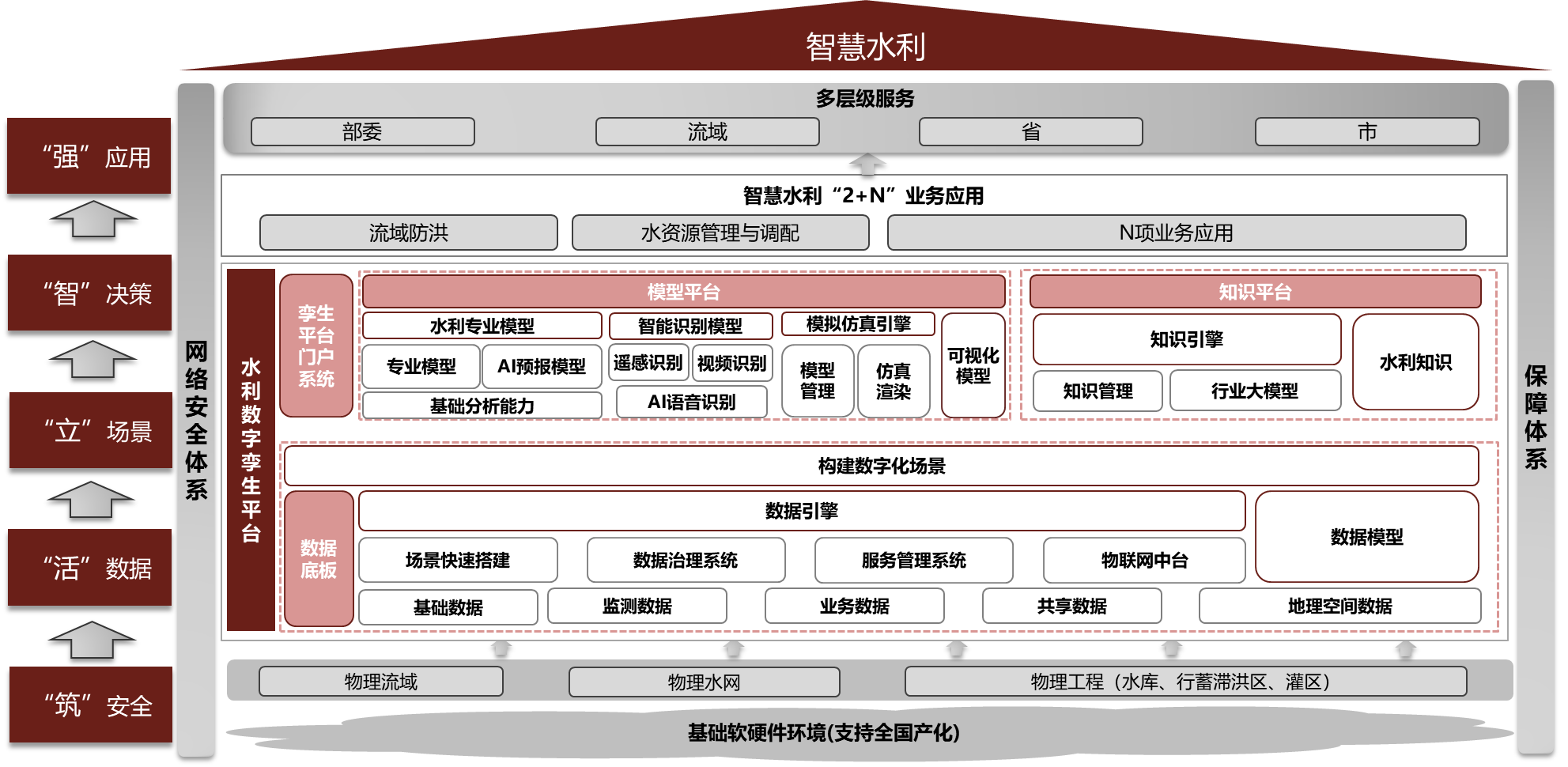 以水利專業(yè)模型、智能模型、水利知識為驅(qū)動,利用AI技術(shù)推動數(shù)智化升維,提升面向2+N業(yè)務(wù)應(yīng)用的模擬仿真推演能力和智能分析決策能力,實(shí)現(xiàn)水利管理活動智慧賦能。
