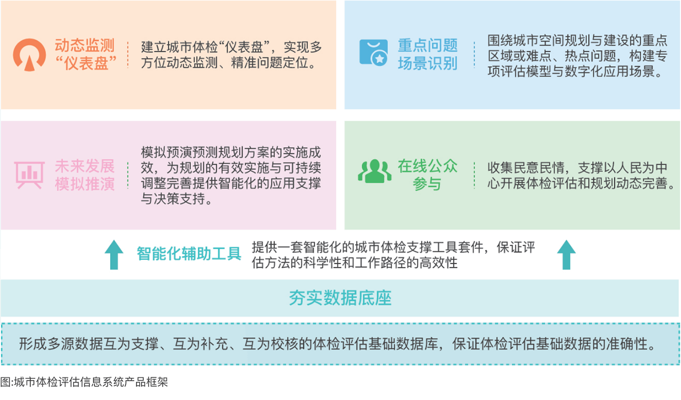通過數(shù)字化、智能化技術賦能開展“一年一體檢、五年一評估”,匯集融合多源數(shù)據(jù)、制定合理的評價規(guī)則、采用智能多維的分析手段,將結果型的“年度體檢”變?yōu)檫^程式的“動態(tài)診斷”,輔助及時診斷國土空間治理、城市規(guī)劃建設中存在的問題和短板,加強規(guī)劃實施的監(jiān)督考核問責,為規(guī)劃實施評估和調(diào)整完善提供決策依據(jù),提升國土空間治理體系和治理能力現(xiàn)代化水平。